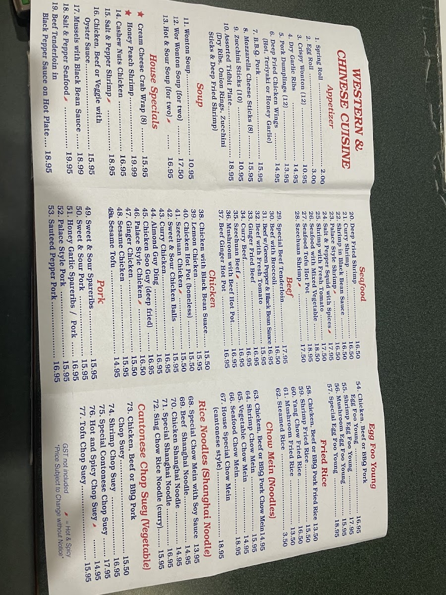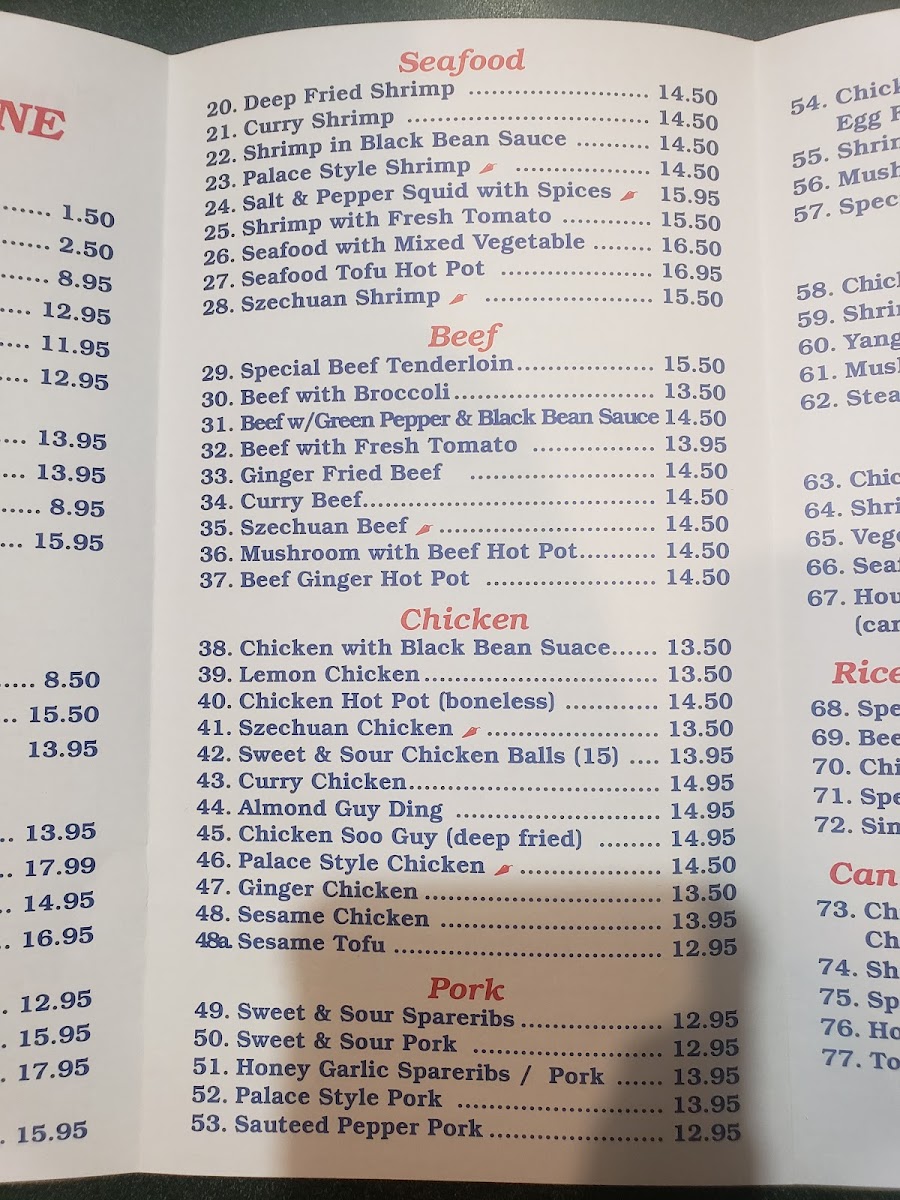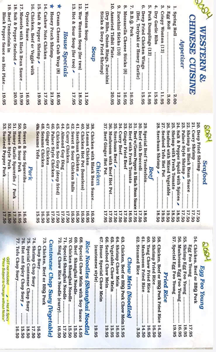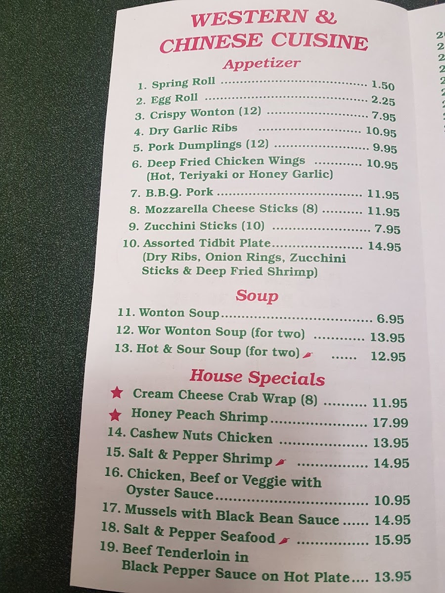 The menu at the Original South China Sea Restaurant offers a wide variety of dishes that showcase the flavors of traditional Chinese cuisine. For appetizers, patrons can enjoy options like Spring Roll, Egg Roll, and Crispy Wonton, perfect for starting the meal. The seafood section features a selection of delectable shrimp dishes such as Deep Fried Shrimp, Curry Shrimp, and Shrimp in Black Bean Sauce, along with the flavorful Palace Style Shrimp and Salt & Pepper Squid with Spices. The Egg Foo Young offerings are diverse, with choices like Chicken, Beef or BBQ Pork, Shrimp Egg Foo Young, Mushroom Egg Foo Young, and the special Special Egg Foo Young. Soups include comforting options like Wonton Soup, Wor Wonton Soup, and the tangy Hot & Sour Soup. For a taste of something different, the House Specials menu features unique dishes like the creamy Cream Cheese Crab Wrap, Honey Peach Shrimp, and the savory Cashew Nuts Chicken. If you’re looking for a hearty meal, the Combination Dinners are an excellent choice, with sets like Dinner for Two, Dinner for Three (A), and Dinner for Three (B). Larger groups can indulge in meals such as the Dinner for Four (A), Dinner for Five, Dinner for Six, or even the Dinner for Eight, which provide an abundance of flavors to share. Whether you're in the mood for seafood, a comforting soup, or a flavorful combination platter, there’s something for everyone on this well-rounded menu.